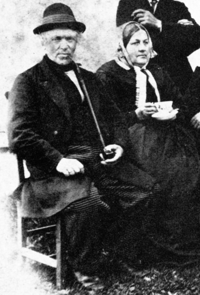 Fra venstre: Jacob Henrik de Rytter Hiorth og hans kone Sofie Fredrikke Hauge Hiorth. Fotografi tatt på gården Ogna i mai 1864. Fotograf: ukjent1)