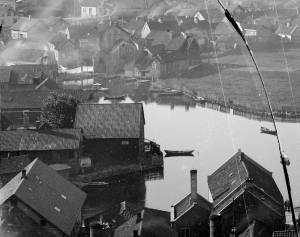 Lervika cirka 1895. På gressområdet til høyre, Areneset, ligger i dag et stort forretningsbygg som bl.a. inneholder leiligheter, bank, tannleger og flere butikker. Foto: E. H. Torjusen/Dalane Folkemuseum DFF-EHT0329 (utsnitt)