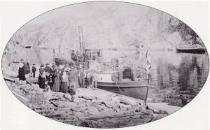 DS «Trafik» i Juvåg (Mong) en søndag i 1902. Foto: Dalane Folkemuseum.